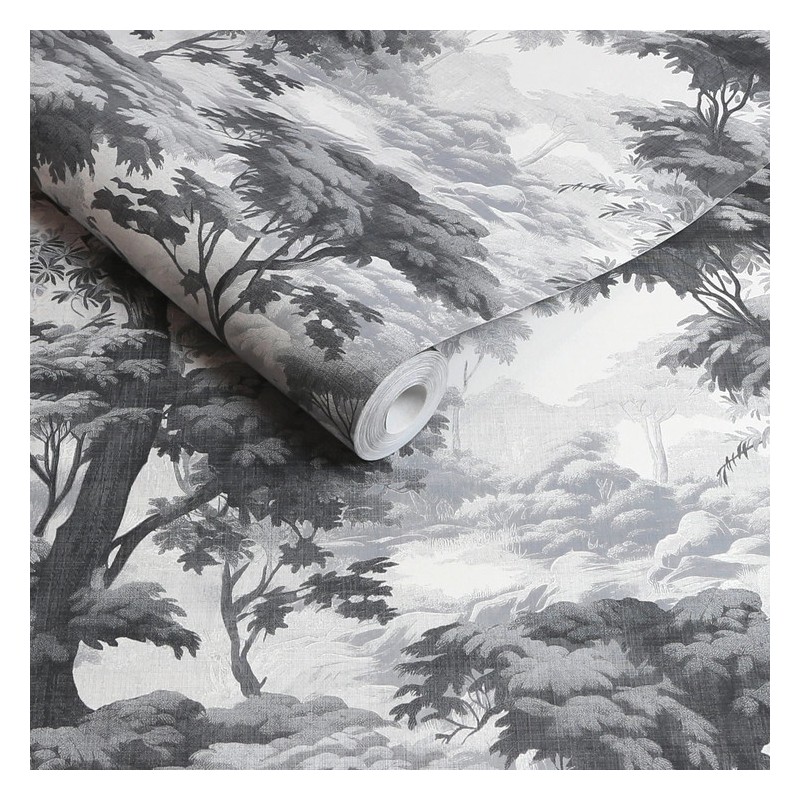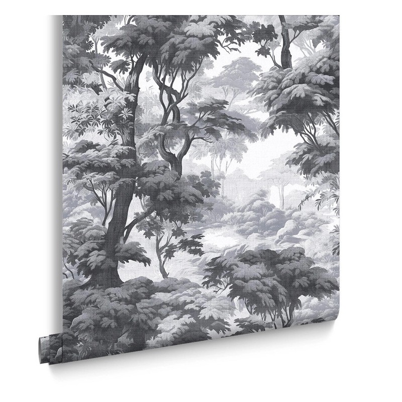 The Bobart’s Garden Monochrome wallpaper is the most classic and understated iteration of this forest scene. Part of the Arboretum collection, it strips away the vibrant colors of the other versions to focus entirely on the artistry of the illustration.