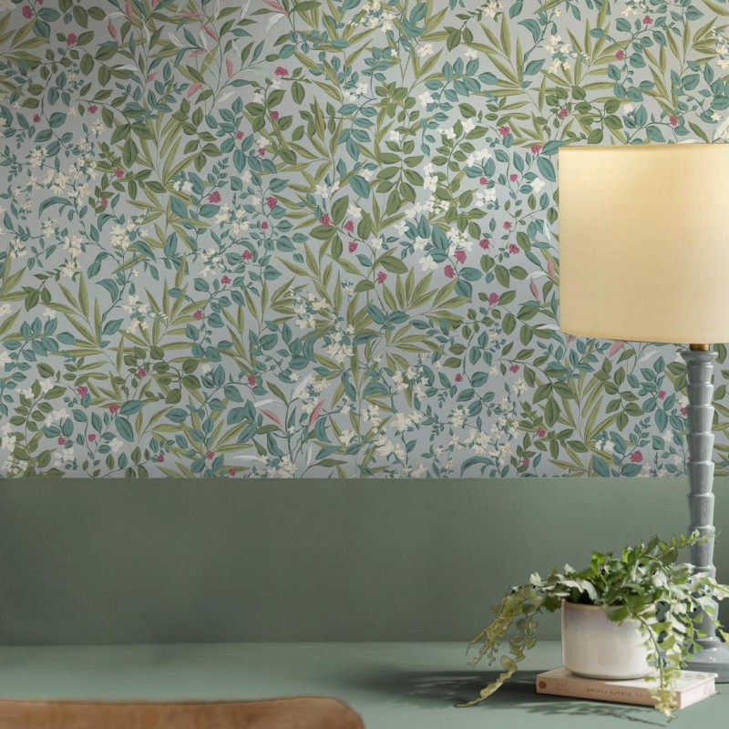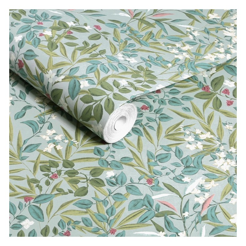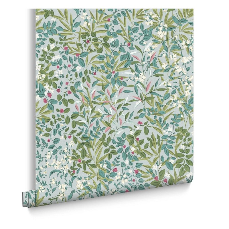 Pattern: The design features a delicate, dreamlike landscape of climbing leaves and soft sprays of blossoms. The hand-painted style gives the foliage a fluid, rhythmic quality, making the pattern feel like it is gently moving across the wall.
