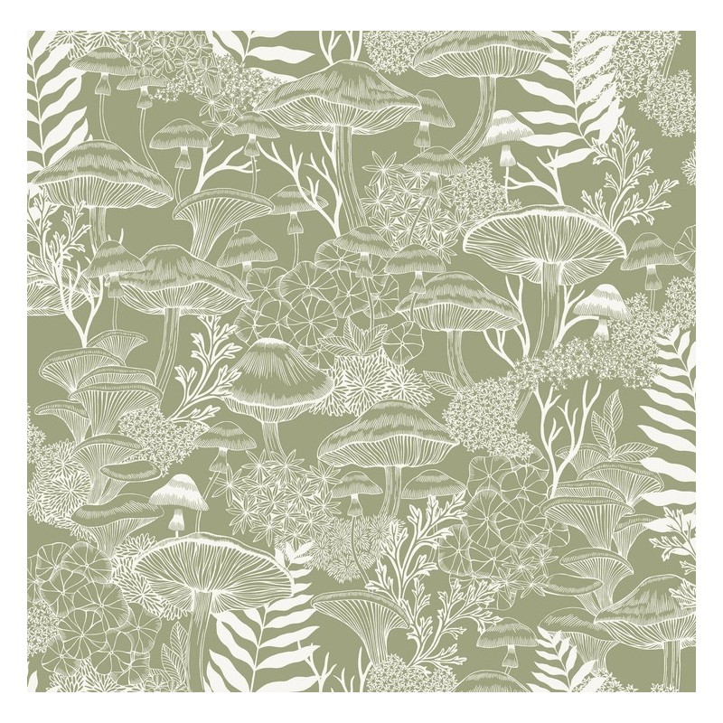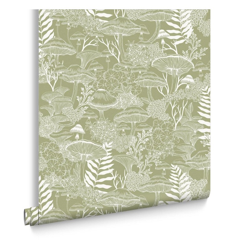Style: It perfectly captures the Cottagecore and Biophilic design trends. By focusing on fungi—a "hidden" gem of the forest—the wallpaper feels modern and unique, while the soft green tones keep the overall aesthetic sophisticated and peaceful.