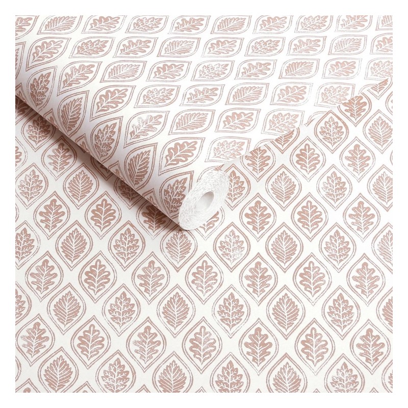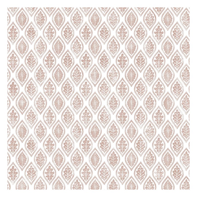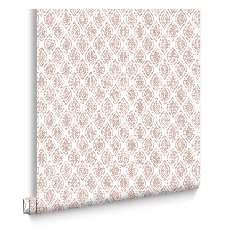 Colourway (Whispering Rose): The palette is soft and restorative. It features warm plaster-pink and dusty rose tones for the leaf detailing, set against a clean off-white or soft ivory background. The combination is airy and light, designed to "lift" a room with a sense of grace and calm.