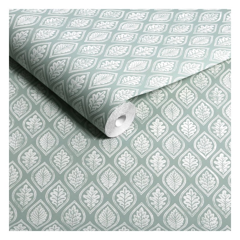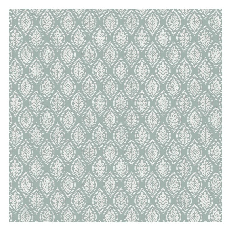 Pattern: This design features a rhythmic repeat of hand-drawn leaf motifs, each delicately "framed" within soft diamond or teardrop shapes. The style is heavily inspired by traditional block printing, giving it an artisanal, hand-pressed textile quality.