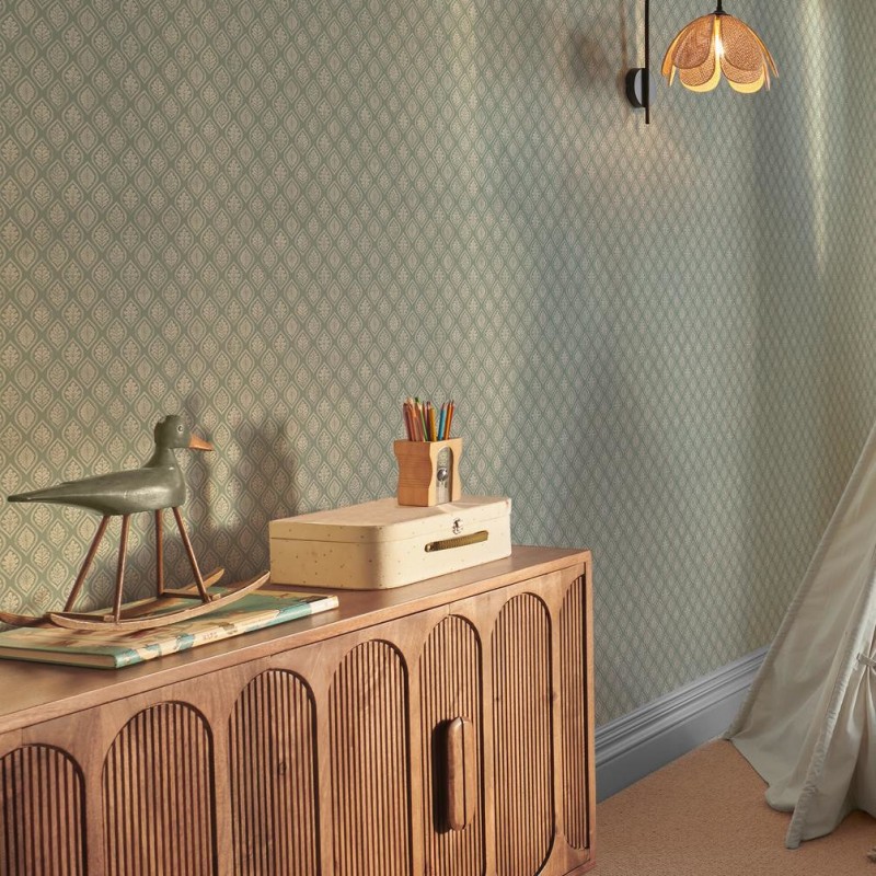 Style: It strikes a balance between a classic geometric trellis and an organic botanical. It is described as having a "hand-drawn quality" that adds subtle texture and authenticity, making it feel more like a bespoke textile than a standard print.